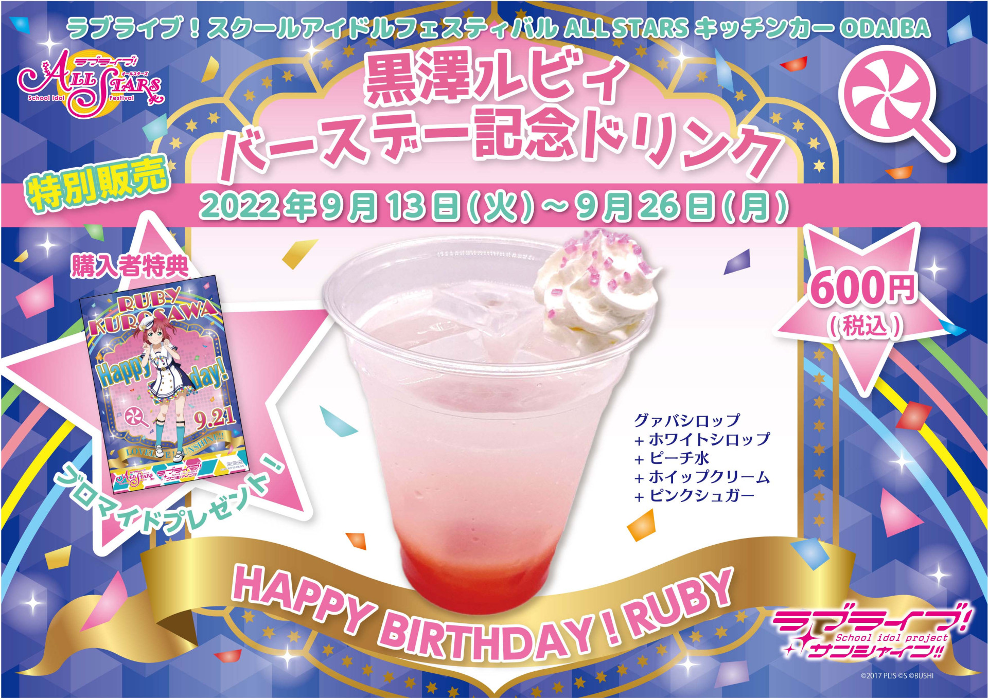 ラブライブ!スクールアイドルフェスティバル ALL STARS キッチンカー at ODAIBA デックス東京ビーチtwitterアカウント:https://twitter.com/all_odaiba