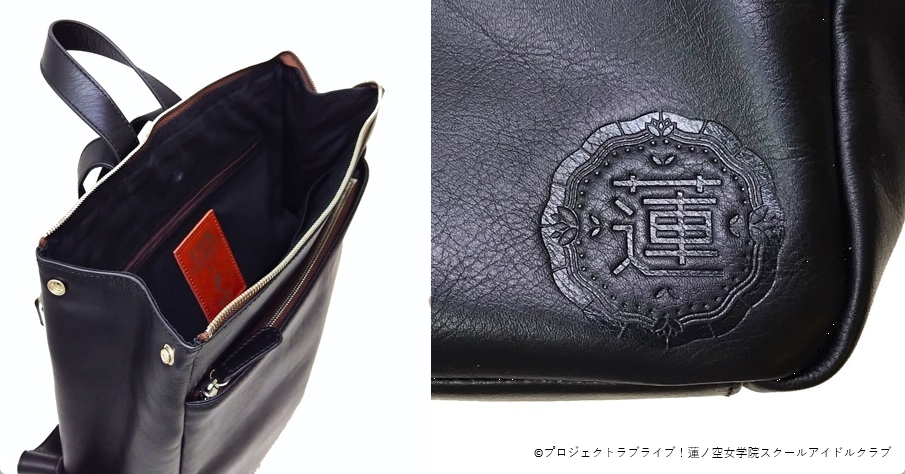 バッグ正面には「蓮ノ空女学院」の校章(素押し)入り。付属品としてユニットのロゴが刻印され