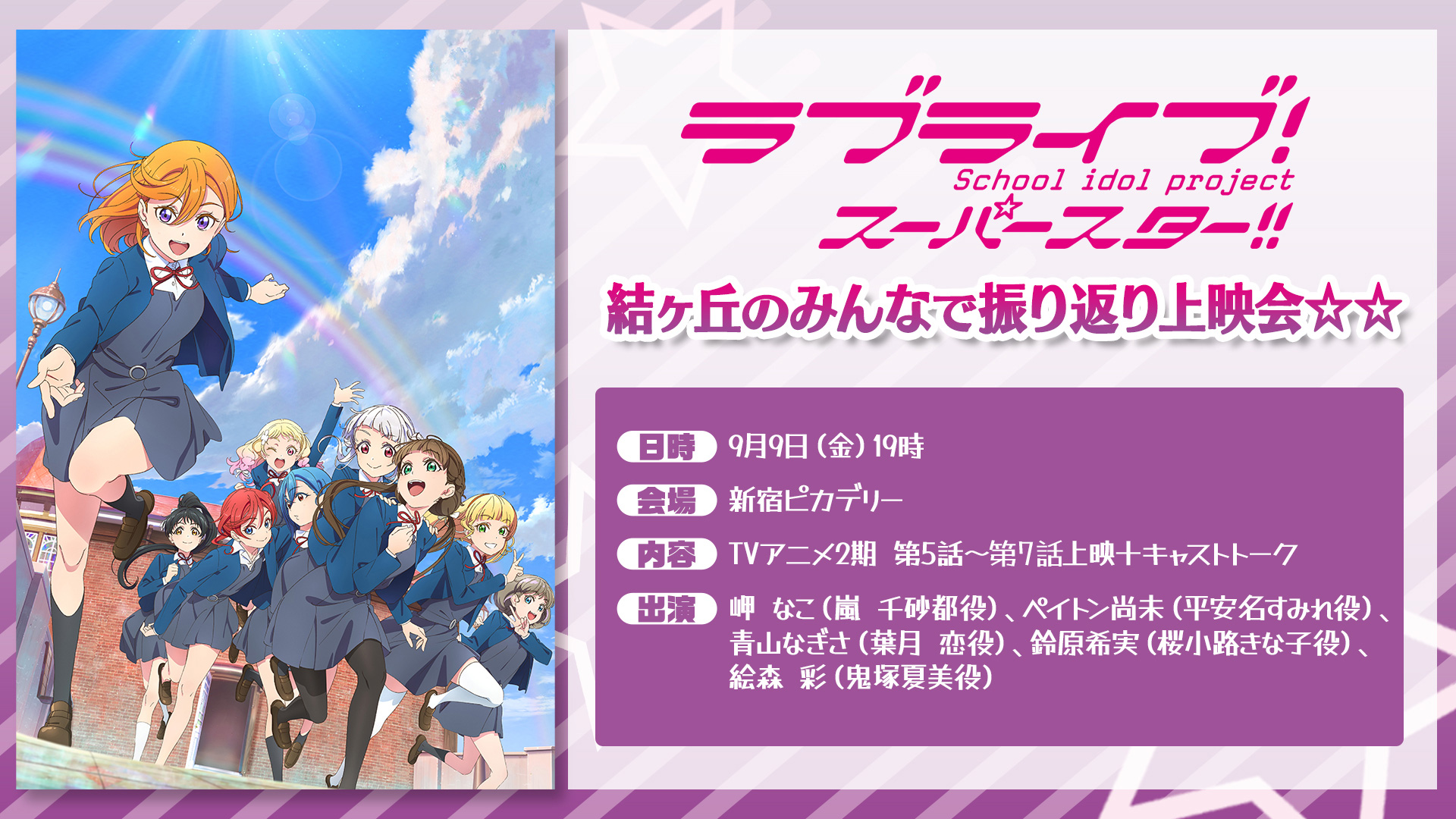 TVアニメ「ラブライブ!スーパースター‼」2期、結ヶ丘のみんなで振り返り上映会☆☆【第2回】の開催が決定いたしました。