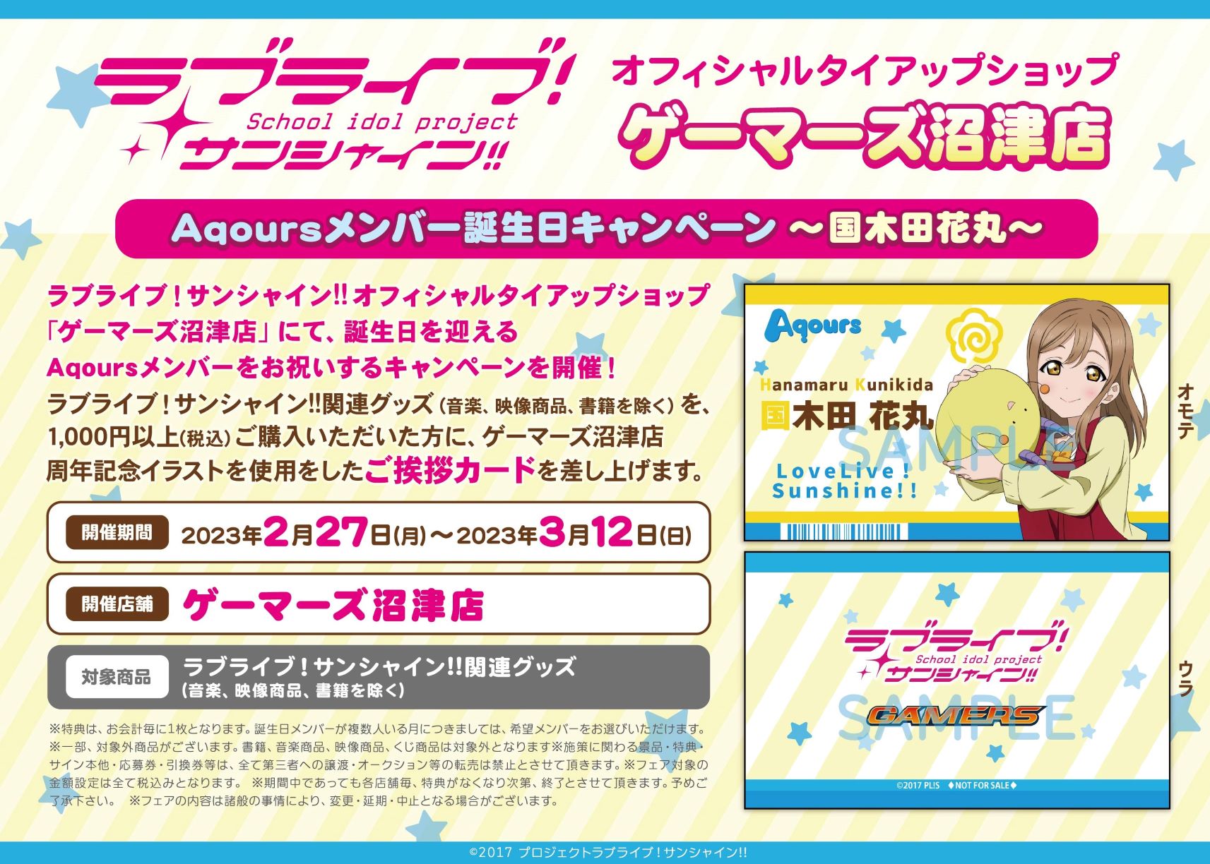 ゲーマーズ沼津店よりAqoursメンバー誕生日フェアのお知らせ