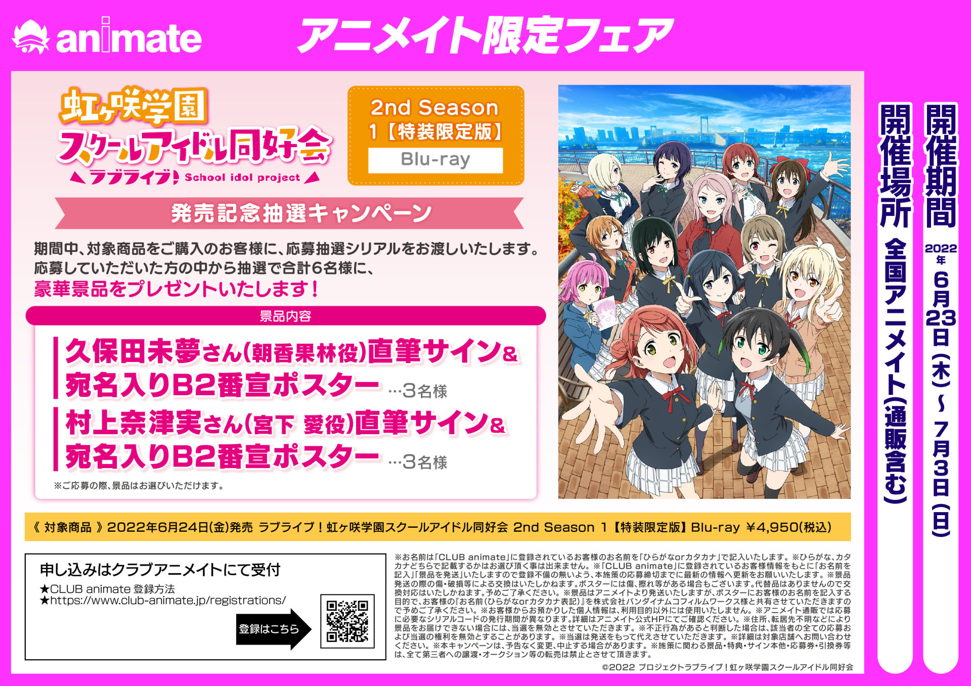 「ラブライブ!虹ヶ咲学園スクールアイドル同好会」TVアニメ2期Blu-ray 第1巻発売記念 アニメイトにて抽選キャンペーン開催決定!