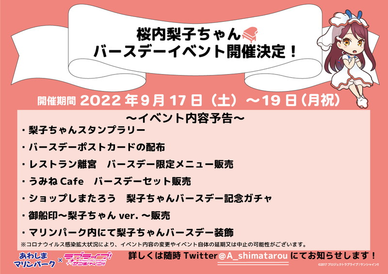 あわしまマリンパークにて、桜内梨子ちゃんバースデーイベント開催!