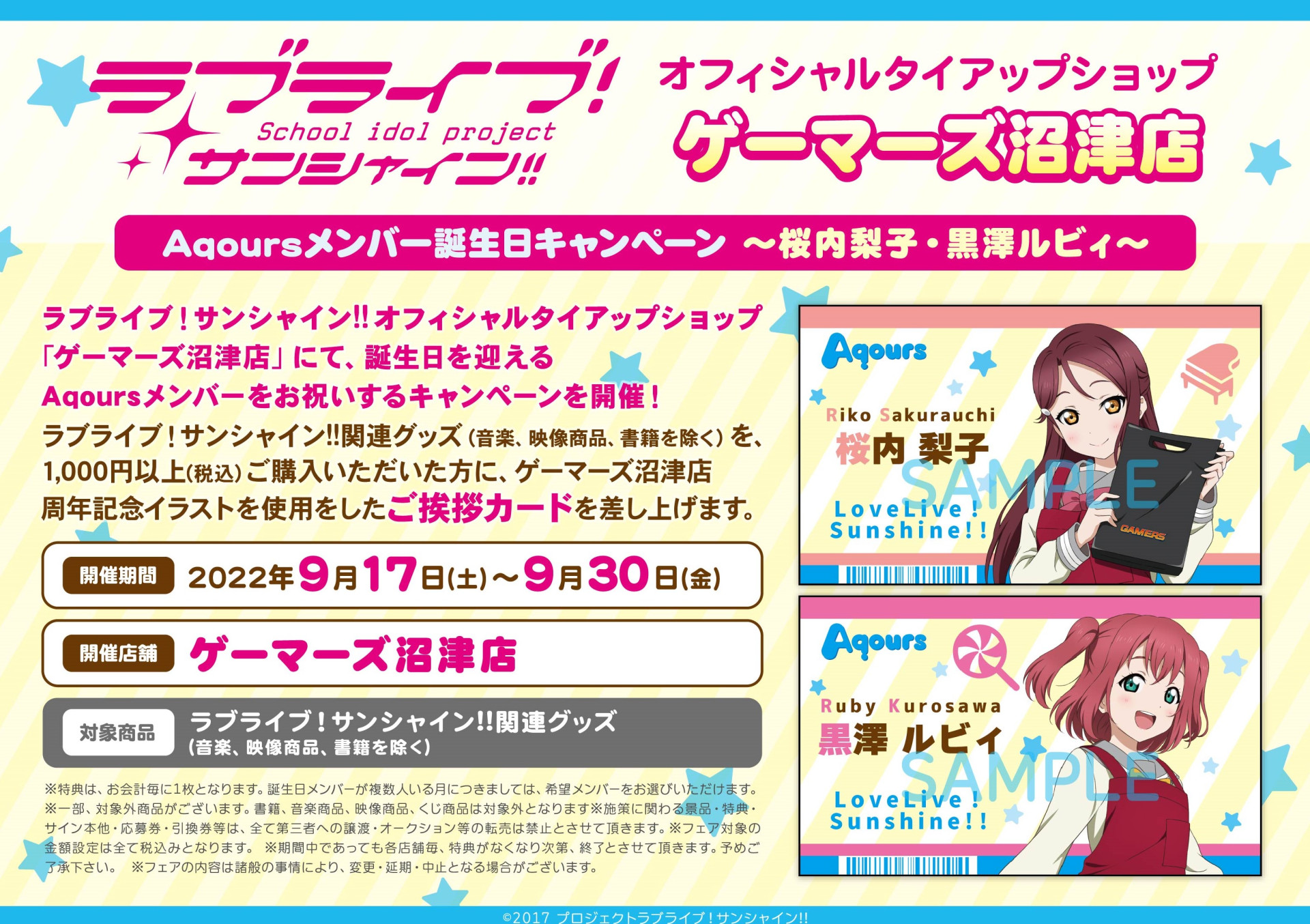 ラブライブ!サンシャイン!!オフィシャルタイアップショップ「ゲーマーズ沼津店」 Aqoursメンバー誕生日キャンペーン~桜内梨子・黒澤ルビィ~開催のお知らせ