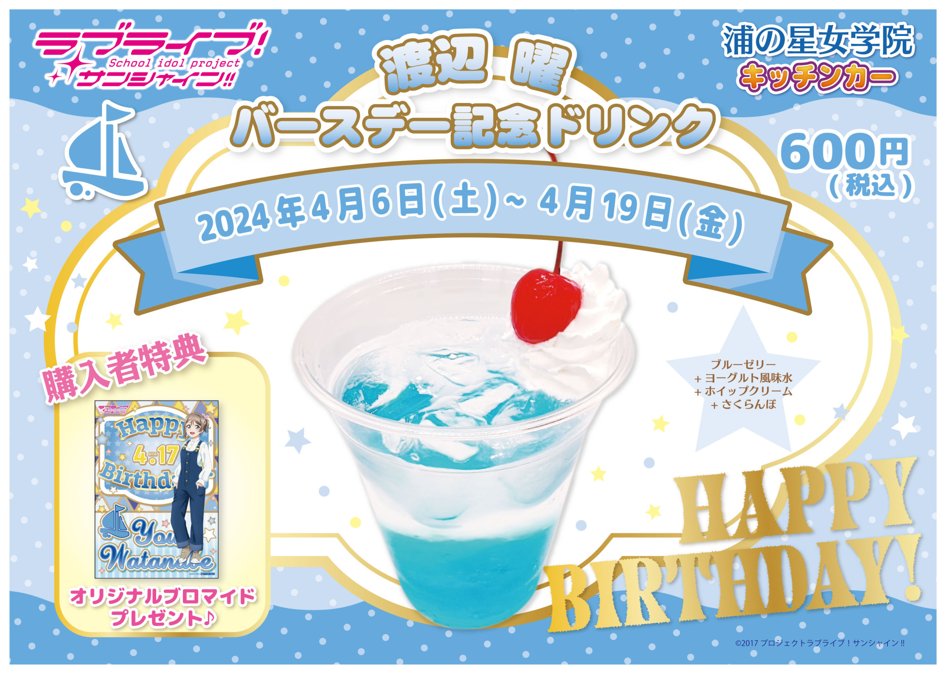 「浦の星女学院キッチンカーよりバースデー記念ドリンク販売のお知らせ」
