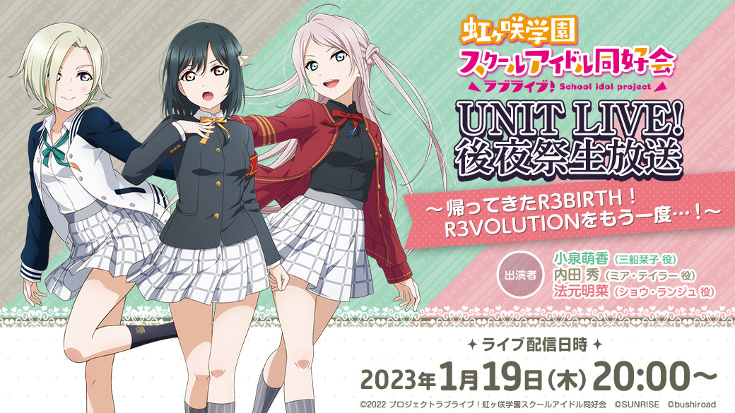 「ラブライブ!虹ヶ咲学園スクールアイドル同好会生放送 UNIT LIVE! 後夜祭生放送 ~帰ってきたR3BIRTH!R3VOLUTIONをもう一度…!〜」アーカイブ配信決定!
